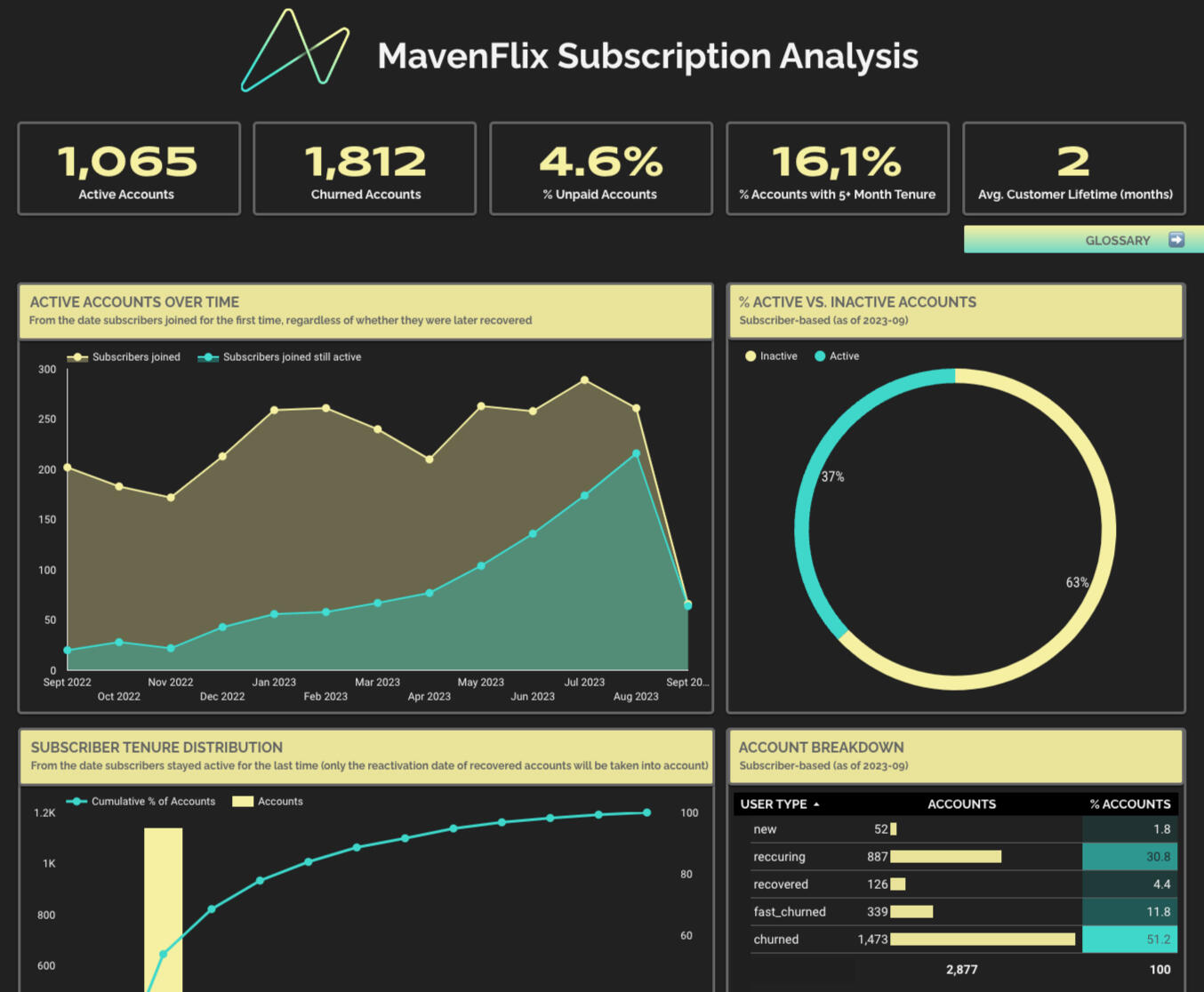 Dashboard: MavenFlix Subscription Analysis Dashboard